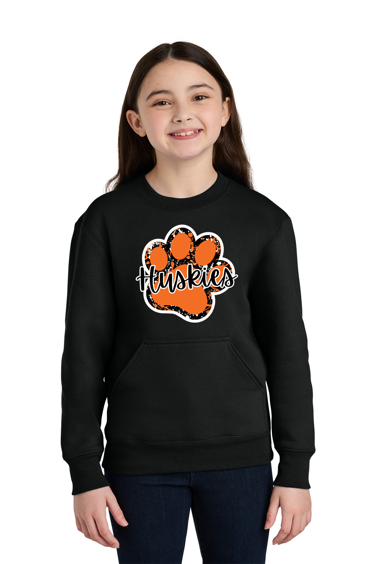 Printed Port & Co Youth Core Fleece Crewneck Pocket Sweatshirt