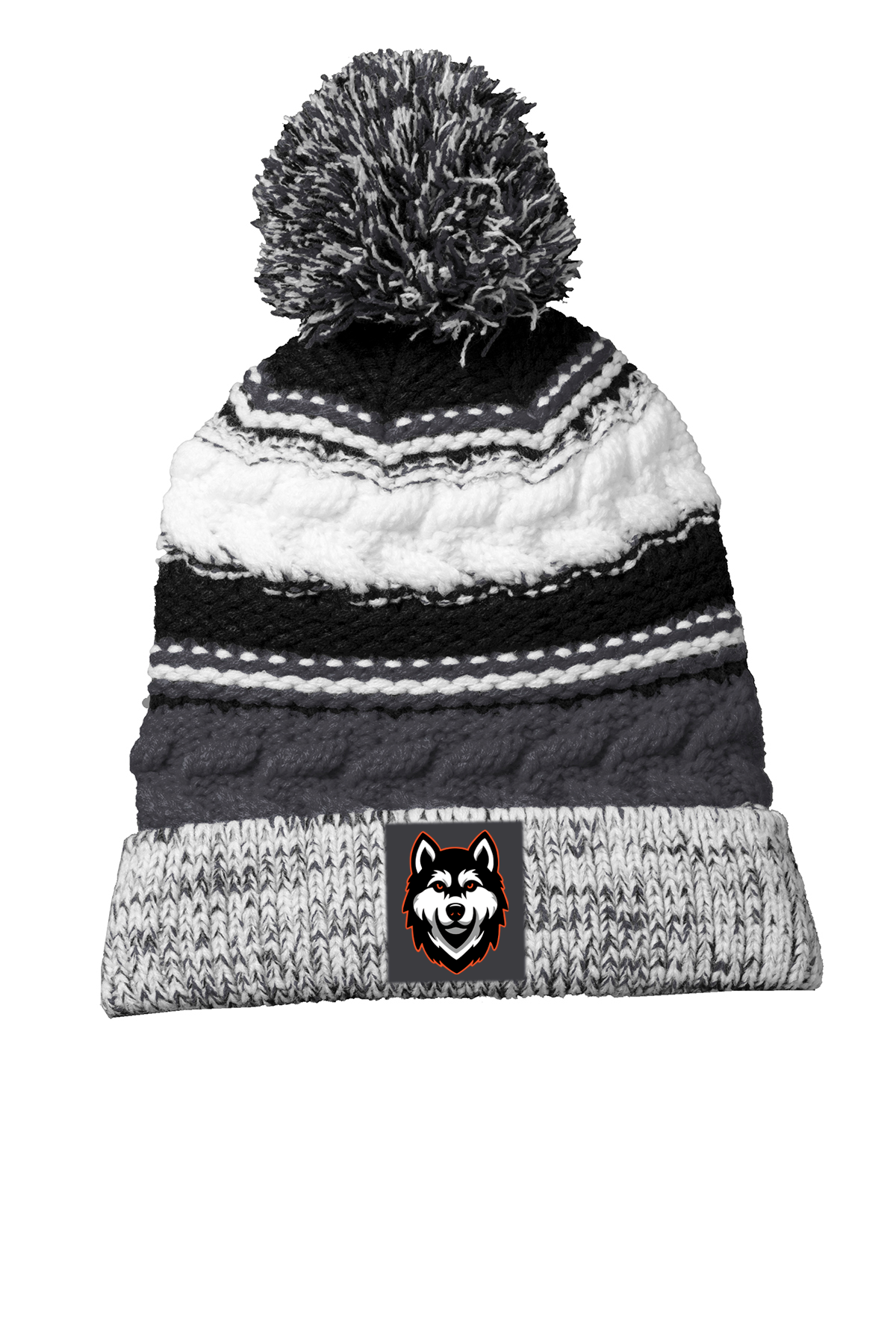 Embroidered Patch on Sport-Tek Pom Pom Team Beanie
