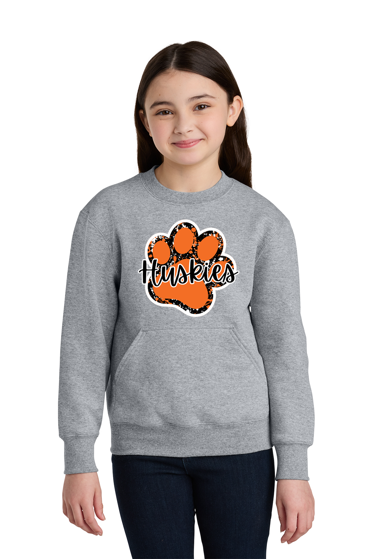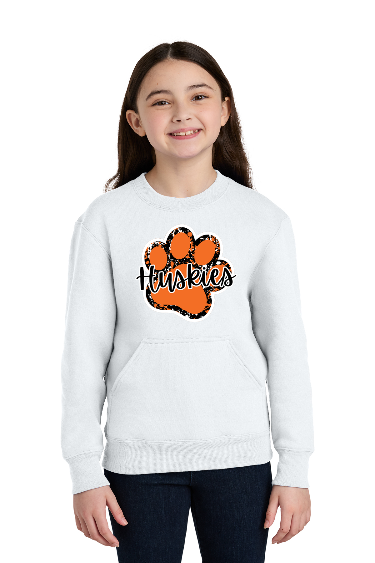 Printed Port & Co Youth Core Fleece Crewneck Pocket Sweatshirt
